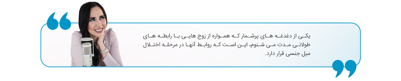 افراد متاهل یا متعهد در روابط طولانی مدت، اغلب این تجربه ها را مطرح می کنند وقتی یک یا دو دهه یا زمان بیشتری از ازدواج شما می گذرد، وجود اختلال در میل جنسی یک عارضه معمولی در روابط شما خواهد بود.
